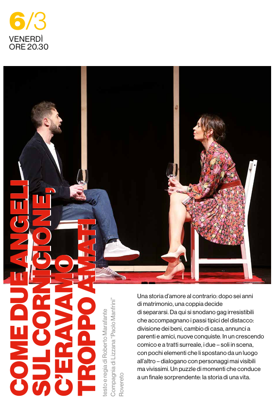 Una storia d'amore al contrario, dopo sei anni di matrimonio, una coppia decide di separarsi. Da qui si snodano gag irresistibili che accompagnano i passi tipici del distacco: divisione dei beni, cambio di casa, annunci a parenti ed amici, nuove conquiste. In un crescendo comico e a tratti surreale, si due - soli in scena, con pochi elementi che li spostano da un luogo all'altro - dialogano con personaggi non visibili ma vivissimi. Un puzzle di momenti che conduce a un finale sorprendente: la storia di una vita.