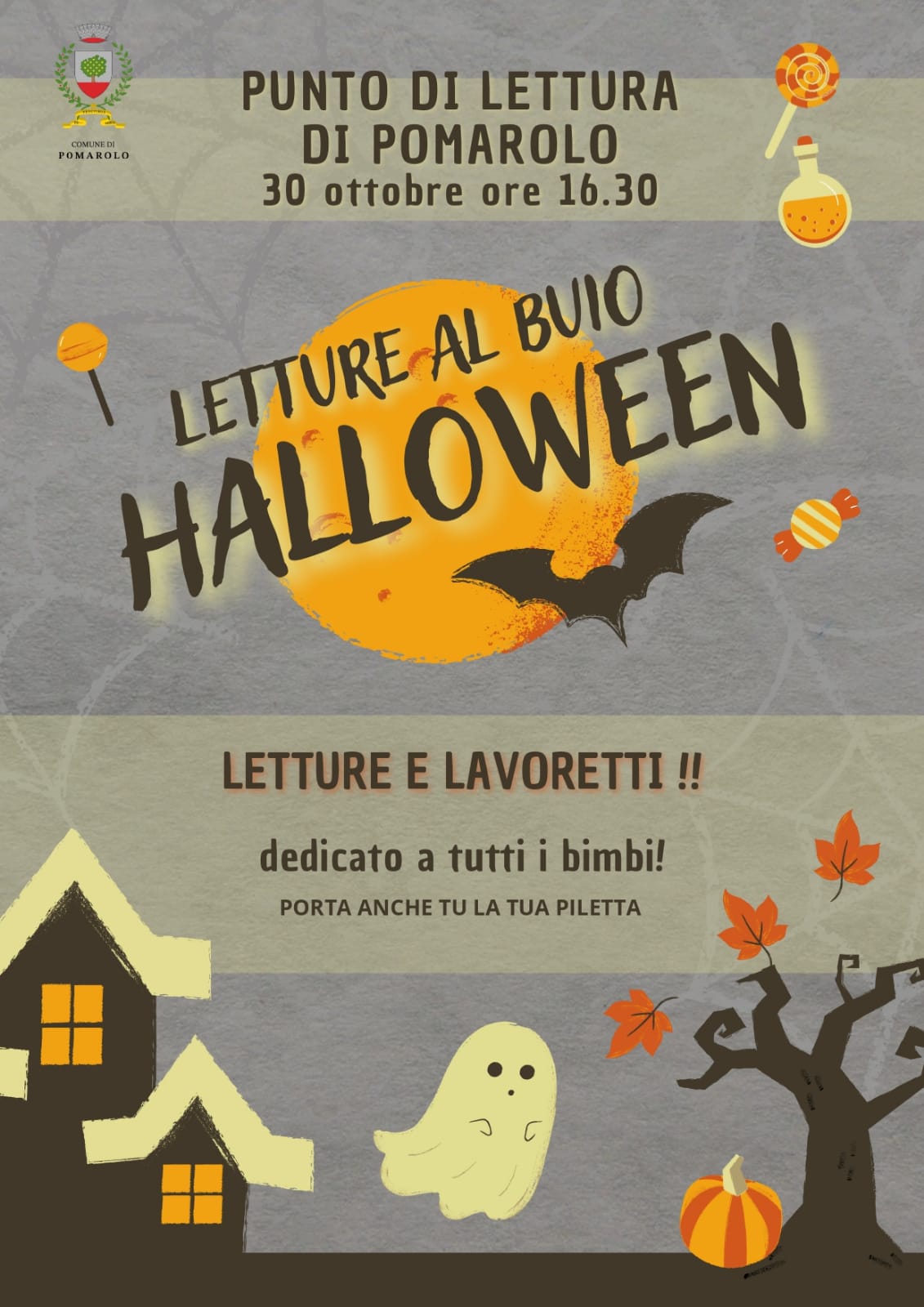 Il Comune di Pomarolo invita tutti i bambini a partecipare ad un pomeriggio speciale dedicato ad Halloween, presso il Punto di Lettura. L'iniziativa propone momenti di lettura e attività creative, per vivere insieme l’atmosfera misteriosa e divertente di questa ricorrenza.